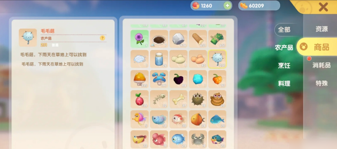 蘑菇类资源是重要的食材和任务道具,主要包括大头菇、毛毛菇、野生蘑菇等。这些蘑菇的获取方式各有不同,主要依赖天气条件、地图探索、活动任务及交易系统。掌握正确的采集方法和时机是高效收集的关键。大头菇和毛毛菇的采集受天气限制,仅在下雨天刷新。大头菇通常出现在浆果丛林、阳光牧场和开心农场,外观为橙色圆形蘑菇,靠近即可采集。毛毛菇同样需雨天采集,分布在相同区域,但外观略有区别。玩家可通过家园内的电视机查看天气预报,提前规划采集时间。雨天时需注意及时收回放养的鸡鸭牛羊,避免淋雨降低好感度。