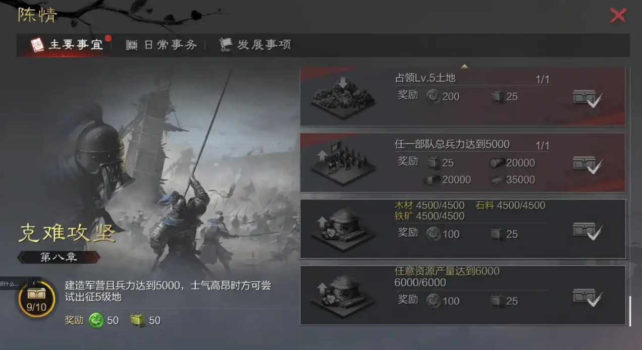 名望是建造值增长的核心,随着名望提升,建造值会逐步增加。名望可以通过完成任务、占领土地、参与联盟活动等方式积累。名望越高,建造值的增长速度越快,因此优先提升名望是提高建造值的基础。建造值不足时,可以放弃部分低效建筑,返还建造值用于更重要的设施。