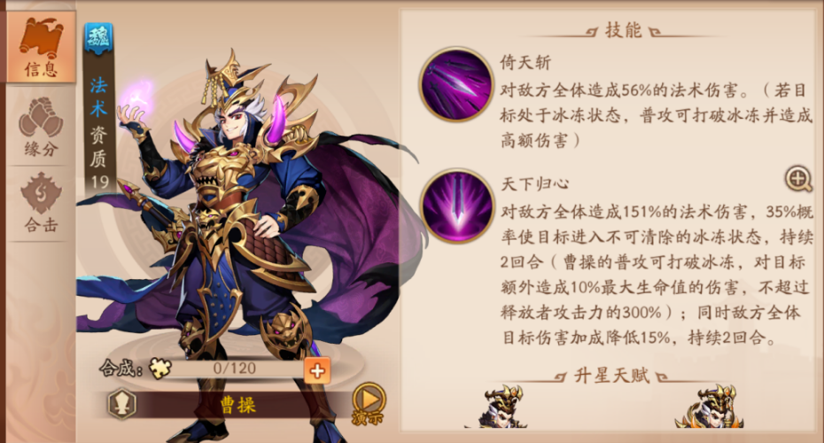 曹操列传的核心通关思路在于合理利用曹操的属性和技能优势。曹操的基本属性中武力、智力、政治较高,适合担任主将或谋略角色,但魅力较低,不适合外交任务。他的技能组合能有效提升队伍整体能力,尤其在战斗中可削减敌方龙魂和无双气势,配合嘲讽效果保护队友。战斗前需优先提升曹操的等级和装备,确保其带兵数量最大化,同时注意敌方阵容的克制关系,避免被高智力武将针对。