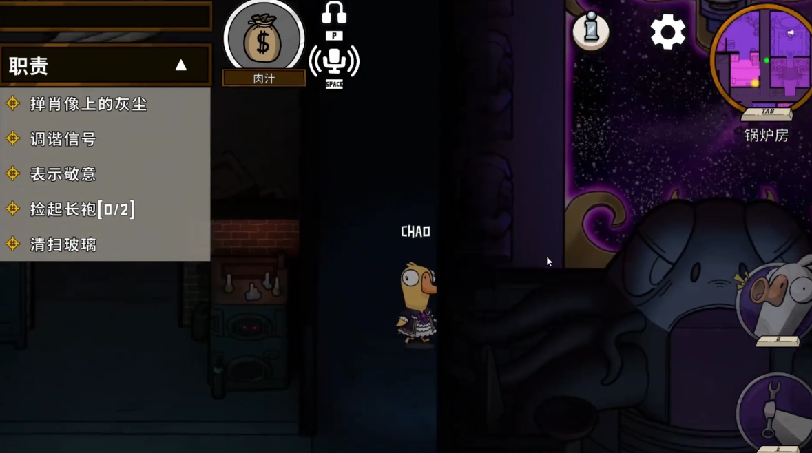 肉汁的核心玩法就是快速完成任务积累赏金,同时避免和狼人独处。每完成一个任务,钱袋子就会更明显,这意味着狼人会更想干掉你。建议开局就直接表明肉汁身份,找两三个可信的好人组成固定小队。抱团行动时记得站在队伍中间,这样既能防止被狼人偷袭,又能通过观察队友反应来判断他们的身份。如果发现有人刻意避开你或者总是想制造独处机会,那很可能是盯上赏金的狼人。