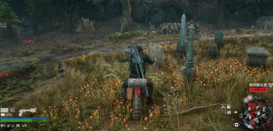 摩托车噪音可能吸引附近变异者或敌对人类,尤其在夜间或暴走潮活动区域。若遭遇敌人围攻,建议放弃推动立即寻找掩体,或利用燃烧瓶等道具制造障碍。技能树中的耐力提升类技能可缩短推动时的体力消耗,但无法改变基础移动速度。部分地形如陡坡或深水区会阻碍推动,需提前绕行。