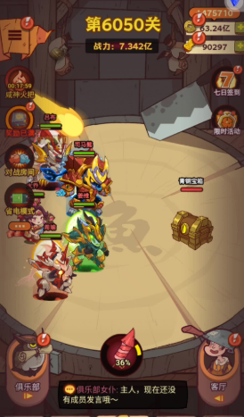 推图是稳定获取宝箱的途径,每过一关给木箱,每五关额外送青铜箱。记得用火把加速推图效率,挂机时尽量选择能稳定通关的关卡。每日咸王考验里的保包蛇BOSS也要认真打,伤害达标能拿到不少好箱子。俱乐部BOSS战虽然给的不是宝箱,但换到的资源能帮你更快推图,间接增加箱子产量。
