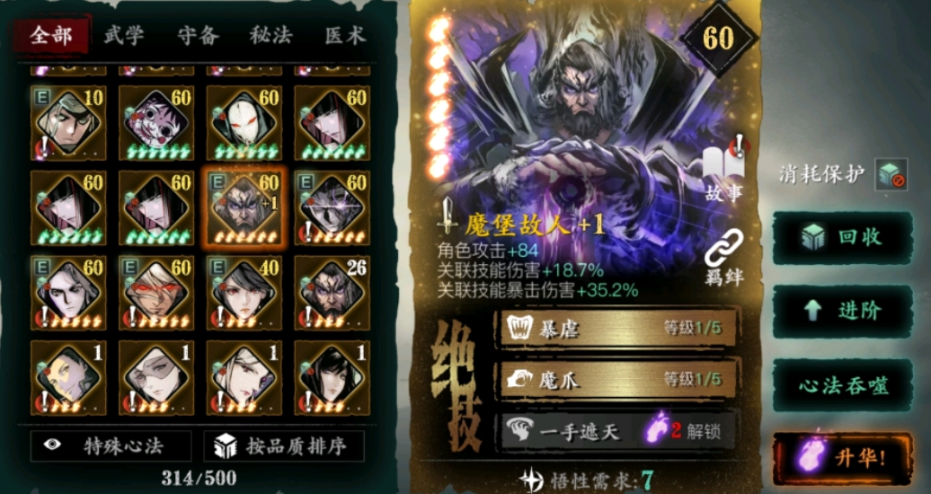 当玩家通过召唤或活动获得同名珍藏心法时,可将原有普通心法作为主体,吞噬新获得的珍藏版。此操作会继承原有心法的等级和培养进度,仅提升品质至珍藏版。需注意吞噬为不可逆操作,被消耗的珍藏心法将永久消失,因此建议优先吞噬未培养的珍藏心法,避免资源浪费。