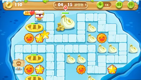 第三个额外任务是150秒内清除所有场上道具。这个任务对清障速度要求很高,开局就需要在能够覆盖多个道具的枢纽位置建造炮塔,太阳花依然是首选,因为它范围大。需要从一开始就规划好炮塔的摆放位置,确保它们能同时攻击到多个道具,并且一有金币就立刻升级炮塔,用最强的火力快速推平所有障碍物。这个任务同样可能需要单独完成,因为要兼顾快速清道具,可能就顾不上用月亮塔打满88个怪了。