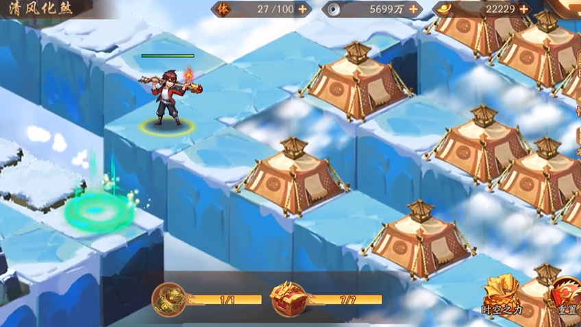 第三关清风化煞是公认最麻烦的一关,推荐战力得到5亿左右。它的地图上有六条像冰层一样的路径,分成三组控制着三个传送点。这关不能一次打通,必须分三次来,每次重置副本后选择两条对应的路线打完,激活对应的传送点。常见的顺序是先打第1和第2条路,重置后再打第3和第4条,最后打第5和第6条。每次传送过去之后,记得把那条路上的奖励和宝箱都捡干净再重置,不然可能就浪费了。全部搞定之后,最终去帐篷那里找到并击败黑衣人。