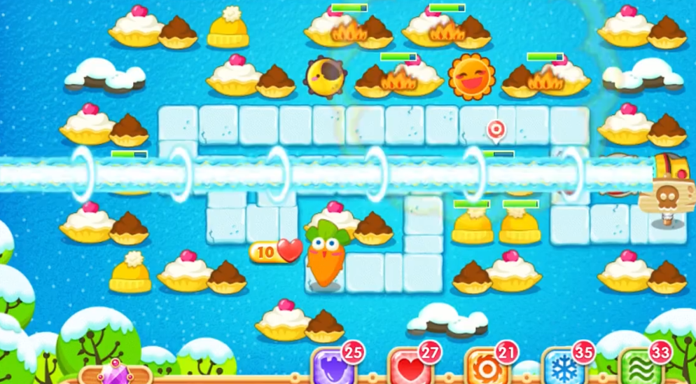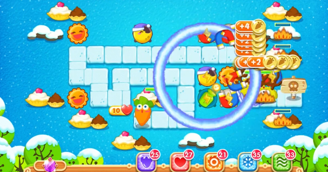 游戏进展,玩家需要将重心转向构建稳定的防御体系,优先在手电筒炮塔的射线范围内布局以最大化输出。避免在关键位置过度依赖月亮塔,转而使用高伤害炮塔如手电筒来应对漏怪问题,并确保炮塔升级到满级以发挥最大效能。注意地图中的冰层崩塌和敌人特殊能力,及时调整炮塔位置来防止萝卜受损。开局通过变卖多余月亮塔可以迅速积累金币,用于优先建造和升级核心炮塔。太阳花塔在清理道具阶段非常高效,但后期需替换为手电筒等塔种以避免资源浪费。灵活运用地图中的障碍物清除奖励,可以获取额外经济支持,从而在限制条件下完成所有额外任务并拿下金萝卜。