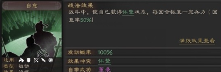 围绕孙坚的嘲讽特性,战法搭配的核心思路便是强化其生存能力与反制能力。战法自愈提供的每回合稳定兵力恢复,能有效弥补因承受大量攻击而产生的战损,是性价比极高的续航选择。后发制人则是经典的反击搭配,每当孙坚受到普通攻击时便会自动反击攻击者,与他的嘲讽效果形成绝佳联动,化被动挨打为稳定输出。若追求更强的控制效果,S级战法魅惑十分理想,它能在孙坚受到普攻时概率使攻击者陷入混乱、计穷等负面状态,为团队创造更多优势。绝地反击等能在后期提供爆发伤害的战法也是可考虑的强化输出选项。