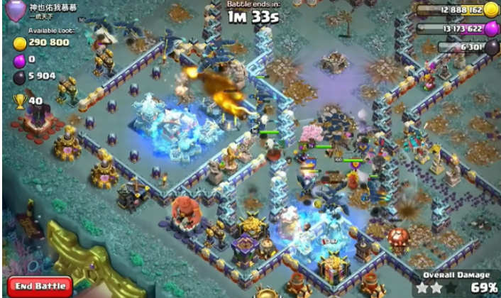 实际进攻时,放下飞龙的时机和方式很有讲究。在清理掉外围建筑并处理掉敌方部落城堡援军后,选择一个防空火箭火力覆盖较弱的边缘作为突破口。放下飞龙时,不宜一字排开过于分散,也不宜全部堆叠在一点,理想的方式是呈一个松散的弧形或分批放下,让它们能相互照应又不会浪费输出。当飞龙集群接近敌方防空建筑或核心区域时,看准时机放下狂暴法术,可以极大提升它们的拆解速度;当它们受到集火伤害时,及时覆盖治疗法术能保证其持续作战能力。如果阵型中有对空单体伤害极高的地狱塔,则需要预判使用冰冻法术对其进行控制。