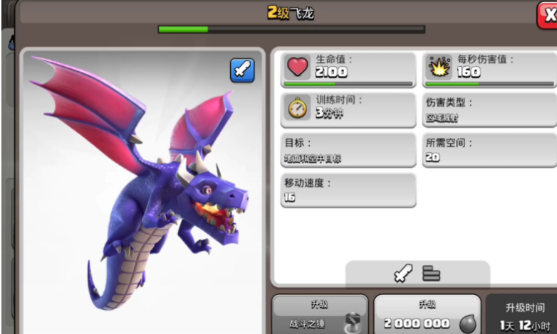 飞龙作为中期解锁的强大空中单位,以其可观的群体伤害和厚实的血量,成为了许多新手玩家在部落战和掠夺资源时的可靠选择。它优先攻击任何目标,攻击类型为区域溅射,意味着一次喷吐能伤害多个地面或空中单位,这在对战密集建筑或防守援军时效果显著。理解它是范围攻击且无特定偏好的特性,是驾驭它的第一步。飞龙的成本虽然较高,训练时间也不短,但在关键战斗中的价值往往物超所值,尤其适合对付防空火箭分散或等级不高的阵型。