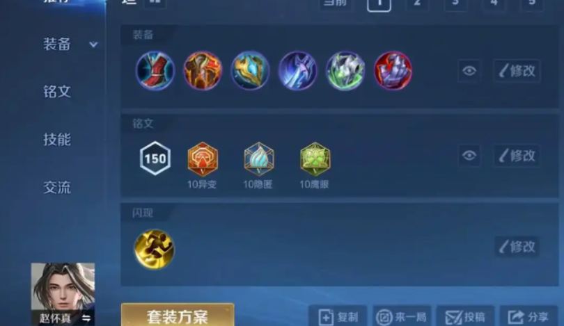 若担任打野位,出装思路需侧重前期发育与普攻强化。装备顺序通常为巨人之握、抵抗之靴、宗师之力、永夜守护、血魔之怒和暴烈之甲。巨人之握能提升打野效率并增加生命值;宗师之力在使用技能后能强化下一次普攻,配合赵怀真的技能机制可打出可观的爆发;后续的防御装备保证其进场后的存活率。也有出装方案会将打野刀替换为浴火之怒,并搭配冰痕之握,以强化留人能力和属性加成。打野时的核心在于快速清野发育,随后利用技能控制帮助队友抓人,或集合队友入侵敌方野区获取资源。