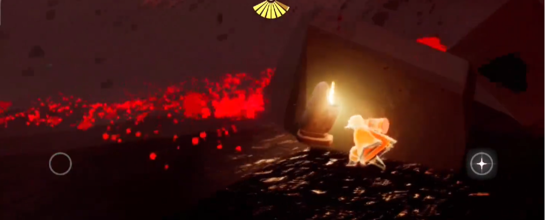 刚踏入暴风眼的碎石区,强风会持续向后推搡角色,飞行效率大幅降低,需贴紧左侧山壁前进减少飞石冲击。飞石攻击伴随风声预警有固定间隔,每次停歇的短暂间隙是移动窗口期,要快速冲向巨大岩石后躲避,切勿在空旷处停留。沿途红色水晶会持续损耗能量,必须绕道而行,而发光石灯与烛台是关键补给点,靠近即可快速回满斗篷能量。穿过碎石区抵达风墙路段时,需预留至少两格能量,采用点按飞行的方式,飞一秒松一秒,配合步行缓慢推进,中途可停靠发光云团缓慢回能,待能量充足再继续冲刺。