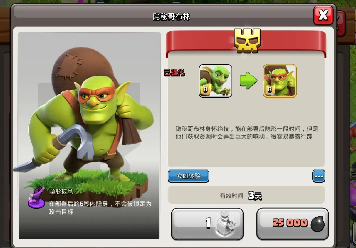 骷髅陷阱、弹簧陷阱与巨型炸弹,能有效干扰武神路线并造成高额伤害。骷髅陷阱触发后召唤的小骷髅,会吸引武神攻击,打断其攻击节奏,使其频繁改变目标,延长在防御火力下的暴露时间。弹簧陷阱布置在城墙狭窄通道或武神必经路线,可将其弹飞,打乱集群阵型。巨型炸弹对集群武神伤害巨大,武神聚集时触发,能瞬间重创多个单位。搭配分散建筑布局,让武神在移动中不断触发陷阱,逐步消耗兵力,大幅降低其进攻能力。