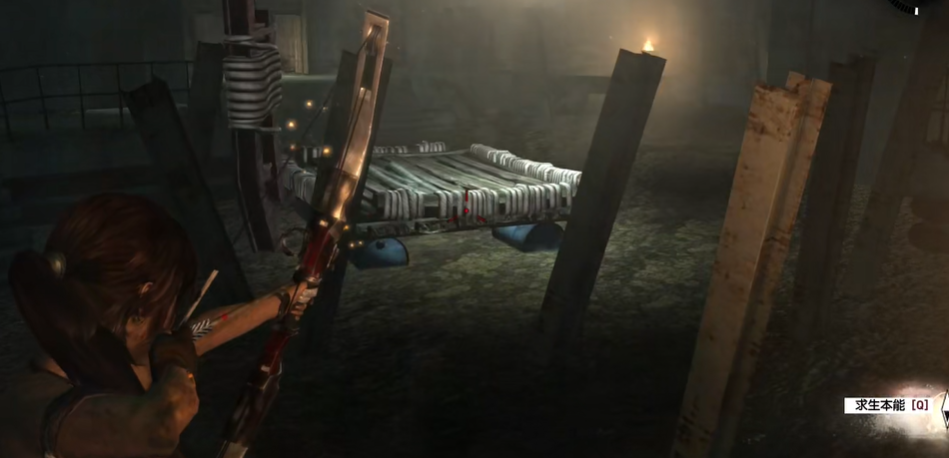 接下来需要利用希腊火桶和绳索箭解决关键问题。将绳箭勾住船上的绳索,快速通过临时搭建的桥梁。特别注意水下行走时需要先点燃木条,避免触电危险。进入实验室区域后,找到电闸并操作它,这是解除水体带电状态的关键步骤。操作过程中需把握时机,在电灯升起的短暂时间内完成移动。