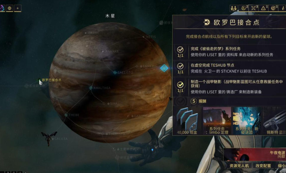 完成新手任务后,建议优先开启星球地图节点,白色边框表示可挑战未解锁区域。初始星球反复刷图收益较低,应尽快推进至欧罗巴或木星获取基础材料。战甲与武器升级提供的段位经验至关重要,满级为30级,8段后可解锁全部物品使用权限。初期白金资源建议用于购买自动拾取道具的信使守护,或补充紧缺材料。