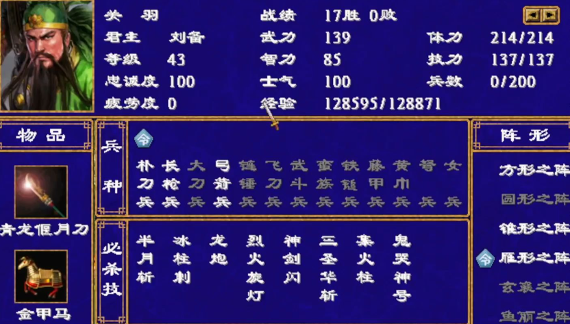 顶尖武将的标杆是拥有终极清兵技能鬼哭神嚎的四位猛将,即吕布、关羽、夏侯惇和太史慈。吕布的武力值达到满值100,是游戏中的单挑天花板,但智力较低。关羽则拥有99的武力和85的智力,是文武双全的代表。夏侯惇的武力和智力较为均衡,并且拥有烈火旋灯这样的优秀清兵技。太史慈同样以高武力著称,并且拥有强大的恢复技能。这四位武将因为鬼哭神嚎的强大威力,被玩家公认为游戏中最强的战力集团。