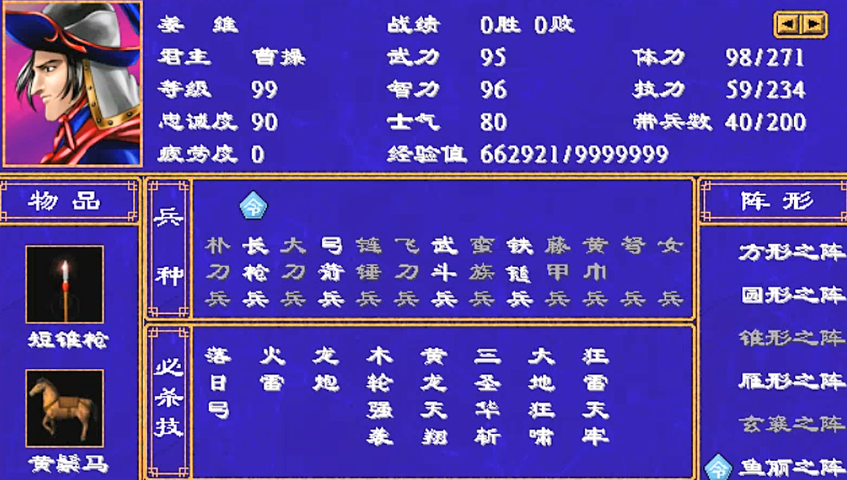 除了上述四位,游戏中还存在一批实力极为强悍的一线武将。马超以其98的顶级武力立足,擅长八门金锁和烈火旋灯。张辽是文武双全的典范,95的武力和88的智力配合落日弓与火系技能,使其适应性强。徐晃的技能组以多段火系攻击为主,操作简单且输出稳定。后期登场的文鸯则拥有落日弓、伏兵班阵和大火,玩法多样。甘宁被许多玩家认为是四鬼之下第一人,技能组合兼顾伏兵、打将和清兵,非常全面。而姜维是游戏中唯一武力与智力均超过90的武将,其技能偏向谋士,后期能力尤为突出。